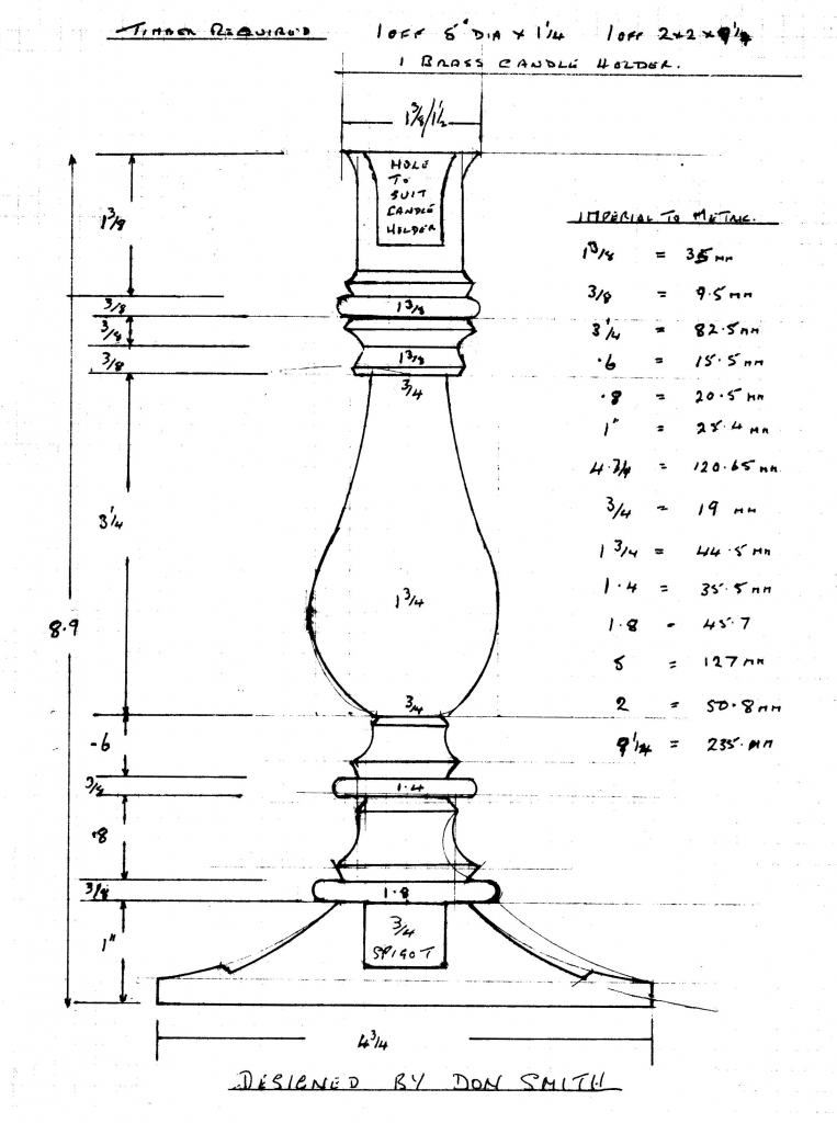 These are two candlestick designs that I came up with to help with ideas for anyone who wants to create their candlestick. You can copy either or use as a starting point to draw up your own. The choice of wood is up to you, its a good opportunity to practice your tool control and technique.