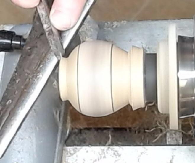 Andy continued to turn the vase until the shape that he wanted was achieved but leaving the base a little thicker to give him stability for when he hollowed out the inside.