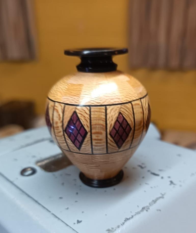 Andy arrived with his wife and thanked everyone for inviting him down for the evening, he explained that his forte’ was segmented turning and would show and describe how he made the individual segments for each piece that he made.