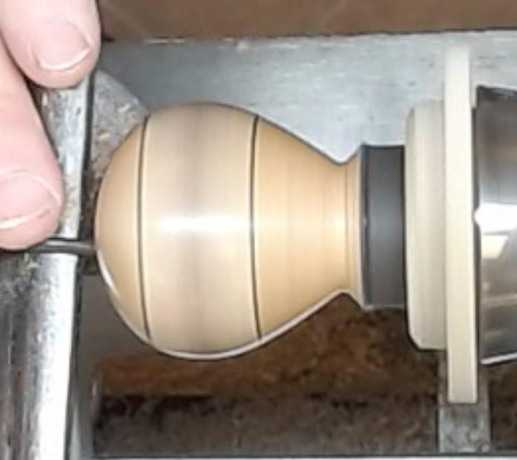 It seemed impossible that Andy would be able to hollow out the vase through a 10mm hole so using homemade tools made from Allen Keys he was able to achieve this. (The only photo I have is showing the tool inserted into the vase). Photo 3